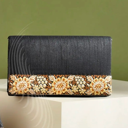 Vintage golden brown kor has been used on this sleek raw silk envelope.Dimensions (HxW, inches)...