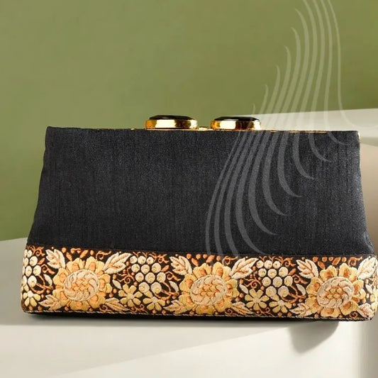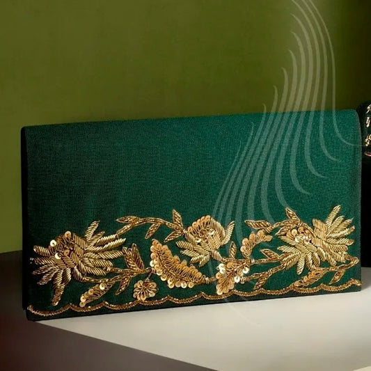 Indian Zardozi features on this bag which has a festive green raw silk backgroundDimensions (HxW,...