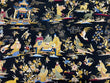 Breathtaking embroidery of a Chinese landscape in shades of ochre make this design a rarity.