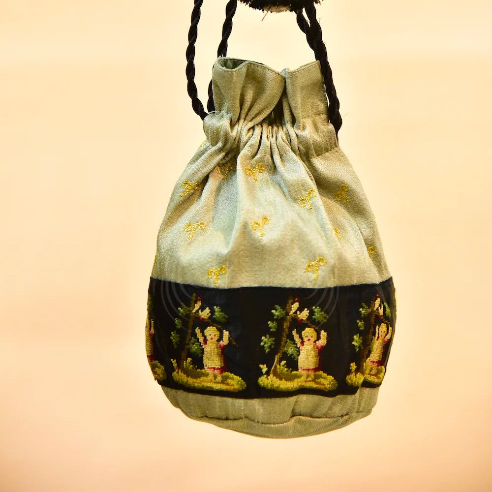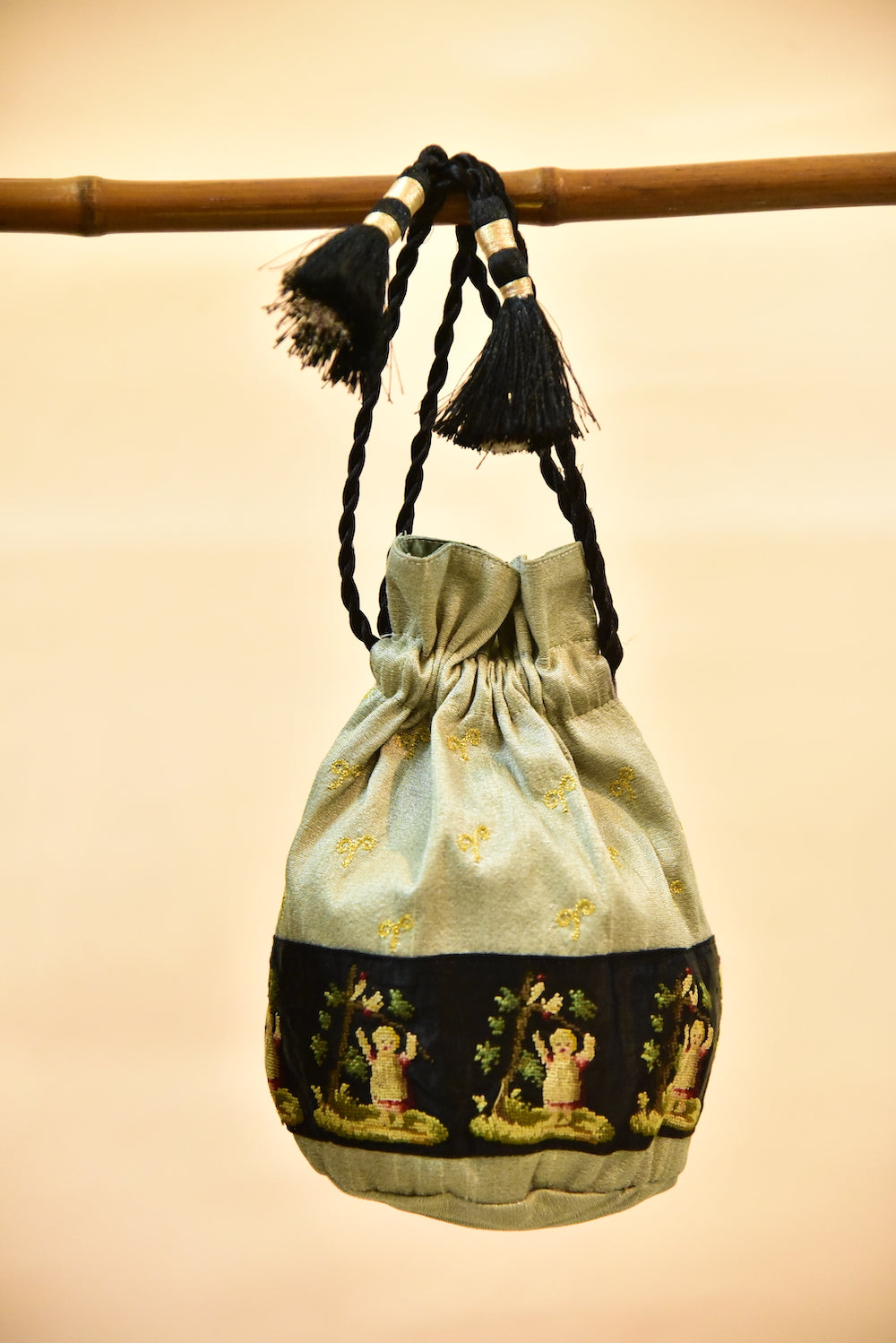 Grey Shimmer Silk Vintage Parsi 'Kor' Potli